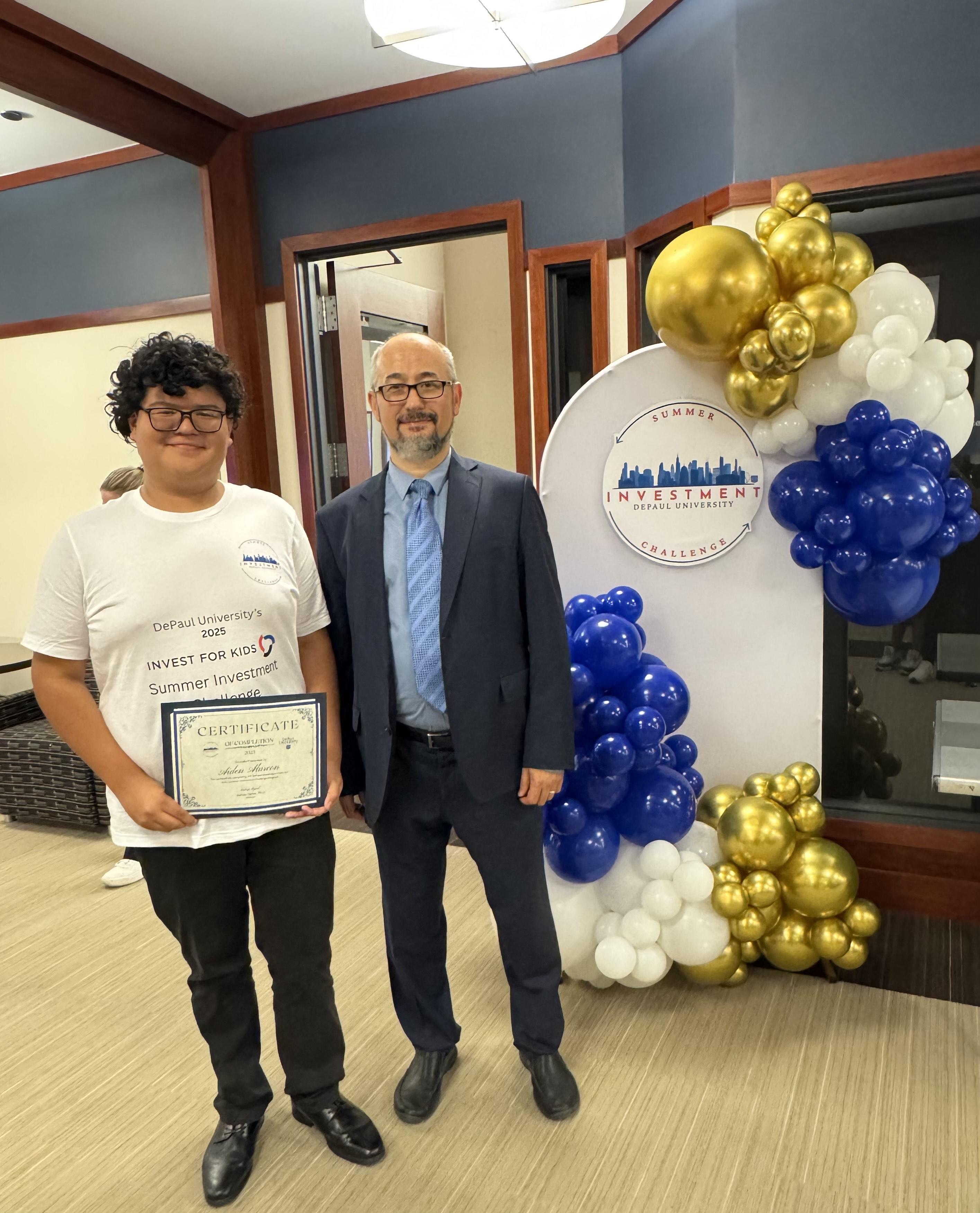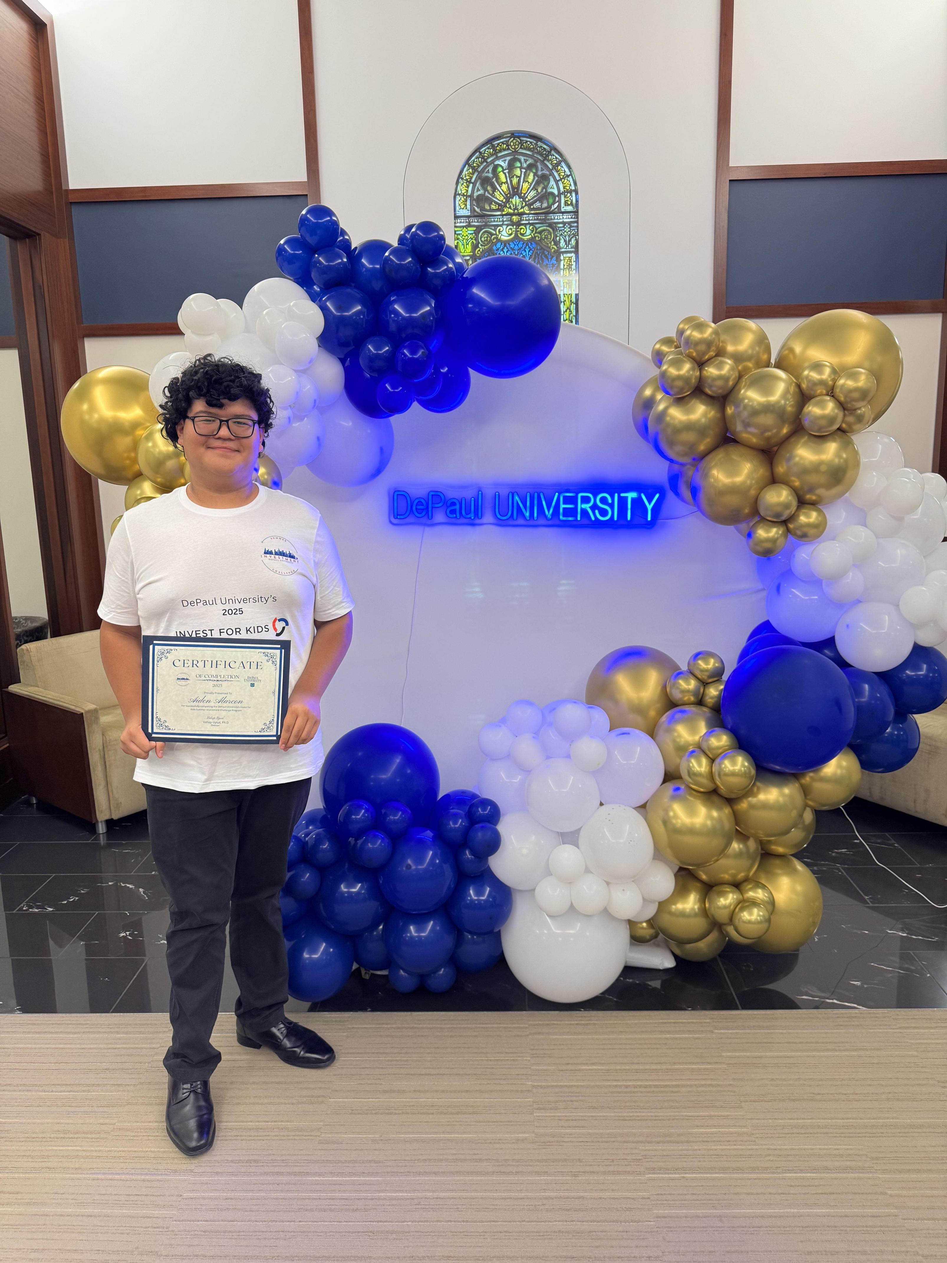 Oak Lawn Community High School junior Aiden Alarcon attended the Invest for Kids Summer Investment Camp at DePaul University in Lincoln Park. The five-day, overnight summer camp, sponsored by different partner companies, is a college immersion experience free of charge for students interested in careers in finance. The curriculum included experiential learning seminars in financial markets, asset, financial instruments, valuation principles, and financial theory; company visits and industry professionals as guest speakers; and workshops in Excel, Bloomberg terminals, and data analysis.