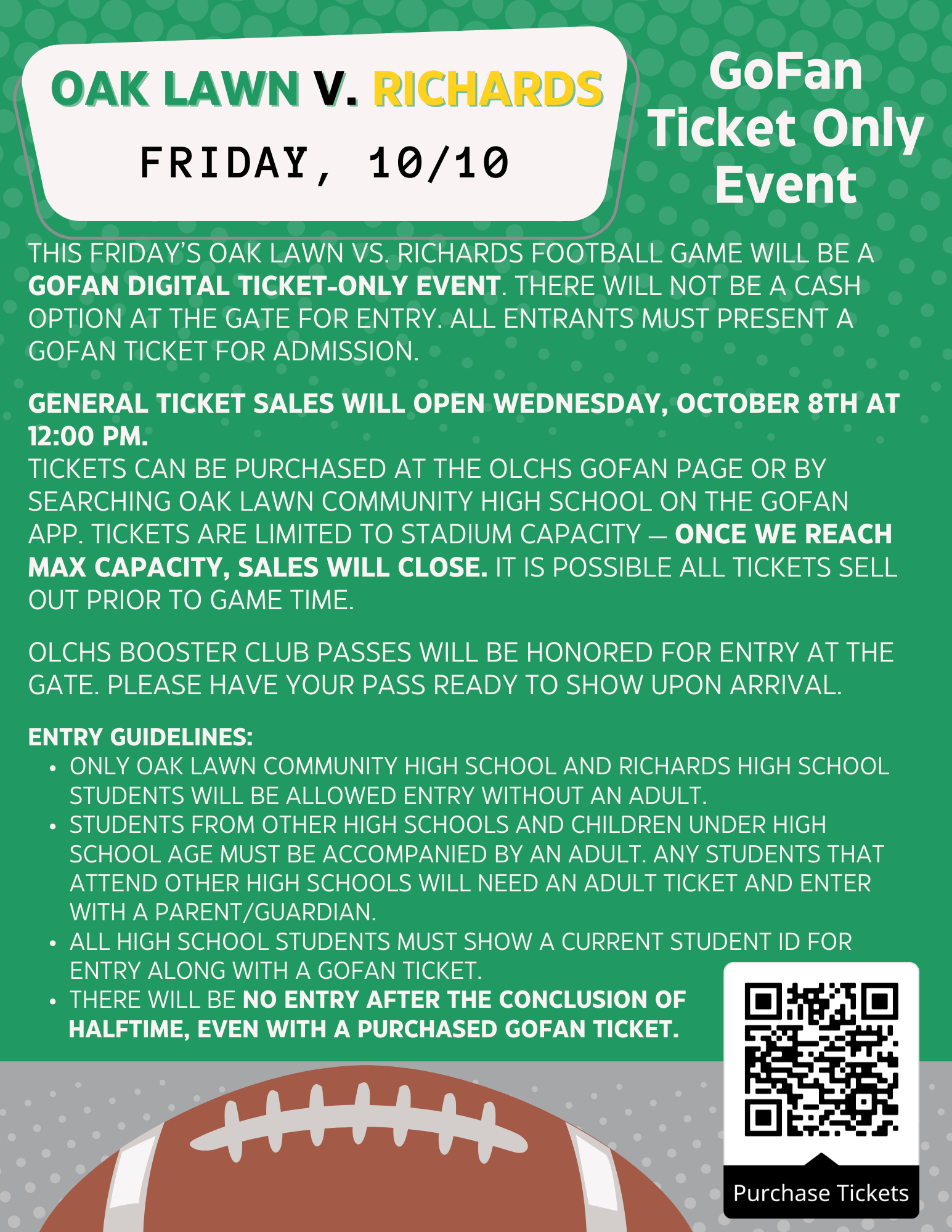 This Friday’s Oak Lawn vs. Richards football is SOLD OUT.